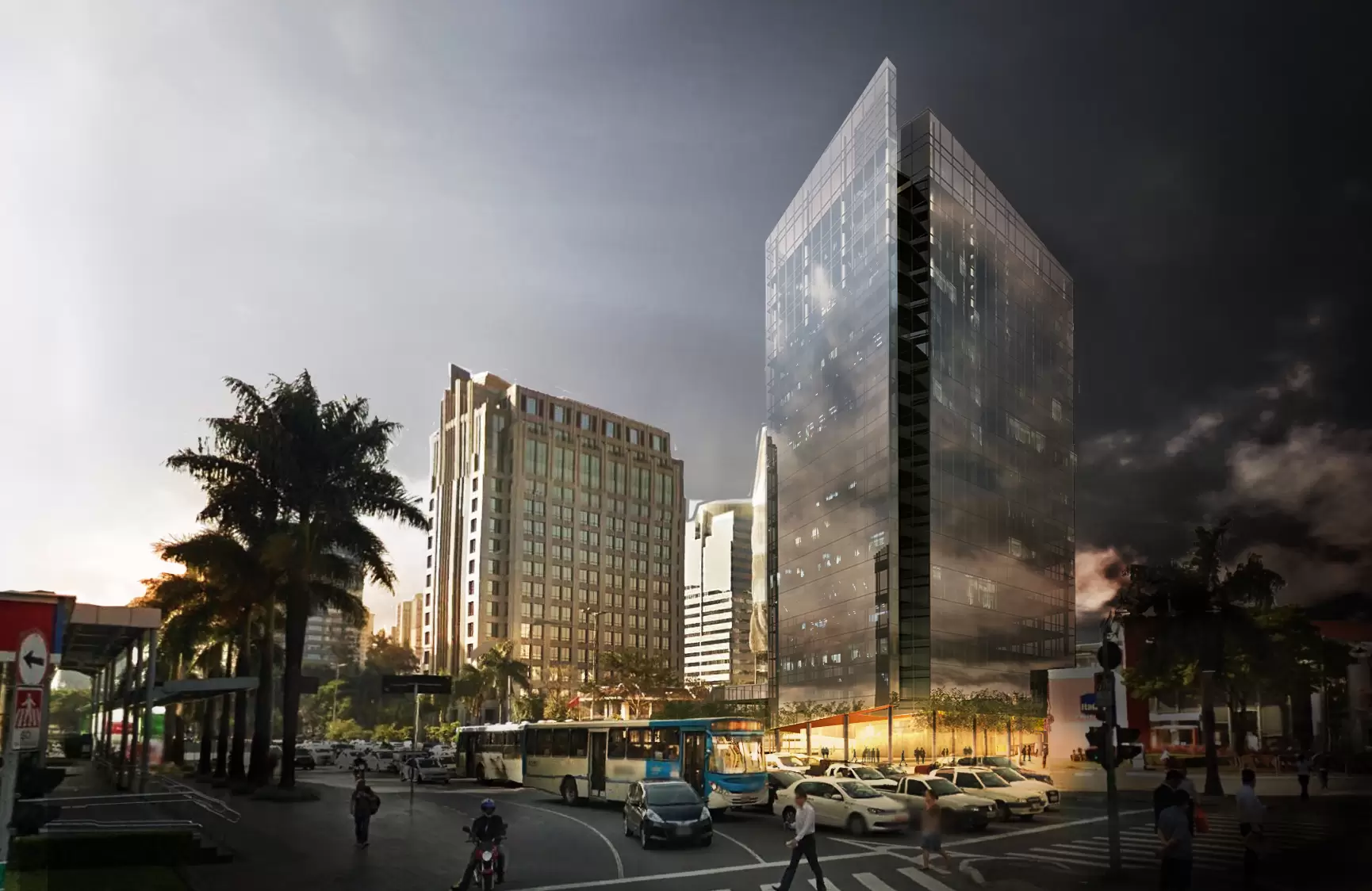 Primeiro grande edifício de nossa autoria, o projeto nasce a partir da intenção de integrar os quatro edifícios que ocupam a quadra. Em busca deste “novo” urbanismo, a representatividade do edifício e a identificação com a cidade são os objetivos maiores. E eles são alcançados quando seu significado não é apenas observado ou assistido, mas sim vivido, e assim legitimado como um novo modelo de estrutura urbana. A identificação do indivíduo com a cidade se dá pelas experiências por ele vividas, pela qualidade e natureza dessas experiências, podendo a identificação ser positiva ou não. É primordial que cada estrutura erguida neste momento deva agregar positivamente ao cenário urbano, na tentativa de construção de uma cidade mais integrada, cujos espaços de convivência sejam potencializadores e catalizadores de novas possibilidades. Como premissa dessa integração a permeabilidade se faz notória.